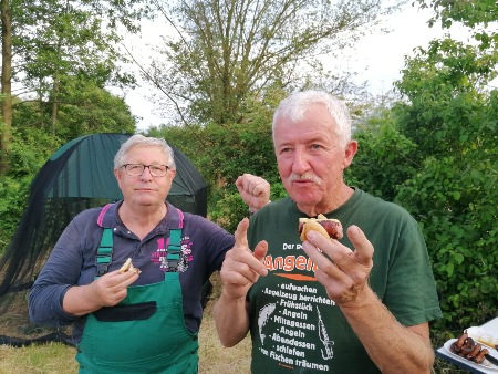 Getränke und Grillsachen gehören in jedes Angelcamp. Gerhard und Gerhard fanden die Wurst auf jeden Fall lecker.