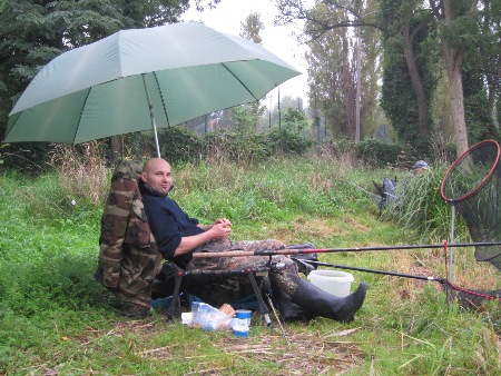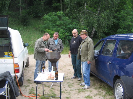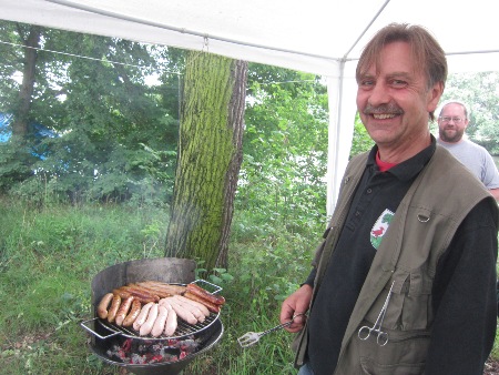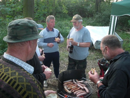 und es ging los. Wie schon so oft, wurde der Wettkampf in den ersten 30 min ent-schieden. 3 Karpfen konnten sich unseren leckeren Ködern nicht entziehen. Und dann gabs da noch eine Pause. Klaus wusste wohl, daß es mit Fischbrötchen als Selbst-versorger knapp werden würde und hatte vorsichtshalber auf Würstchen gesetzt.