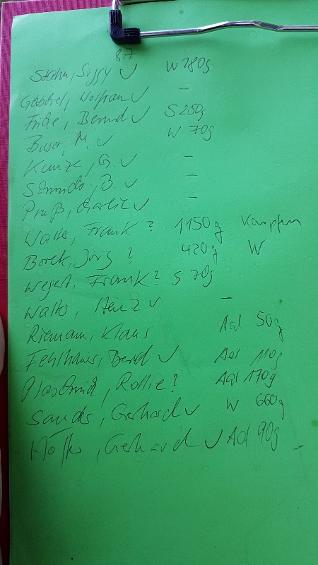 Am Ende wurde gewogen. Frank hatte diesmal knapp die Nase vorn, gefolgt von Jörg und Siegfired. Aber seht selbst:
