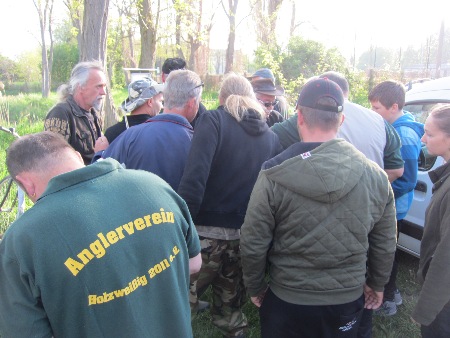 Entwarnung! Ein Startschuß ist nichts außergewöhnliches, wenn Michael mit zu seinen Holzweißiger Petrijüngern das diesjährige Abangeln am Bitterfelder Teich einleitet, oder?